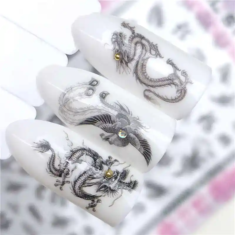Ywk 3d Naklejki Dlya Nogtej Chernyj Kitajskij Stil Drakon Orel (YWK 3D наклейки для ногтей, черный ...)