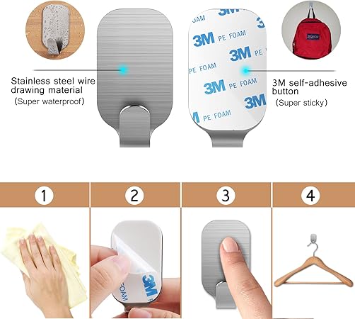 Kone Bathroom 3m Self Adhesive Hook For Towel And Robe Brushed (KONE Bathroom 3M Self Adhesive Hook for Towel and Robe, Brushed Stainless Steel (small-10pcs))