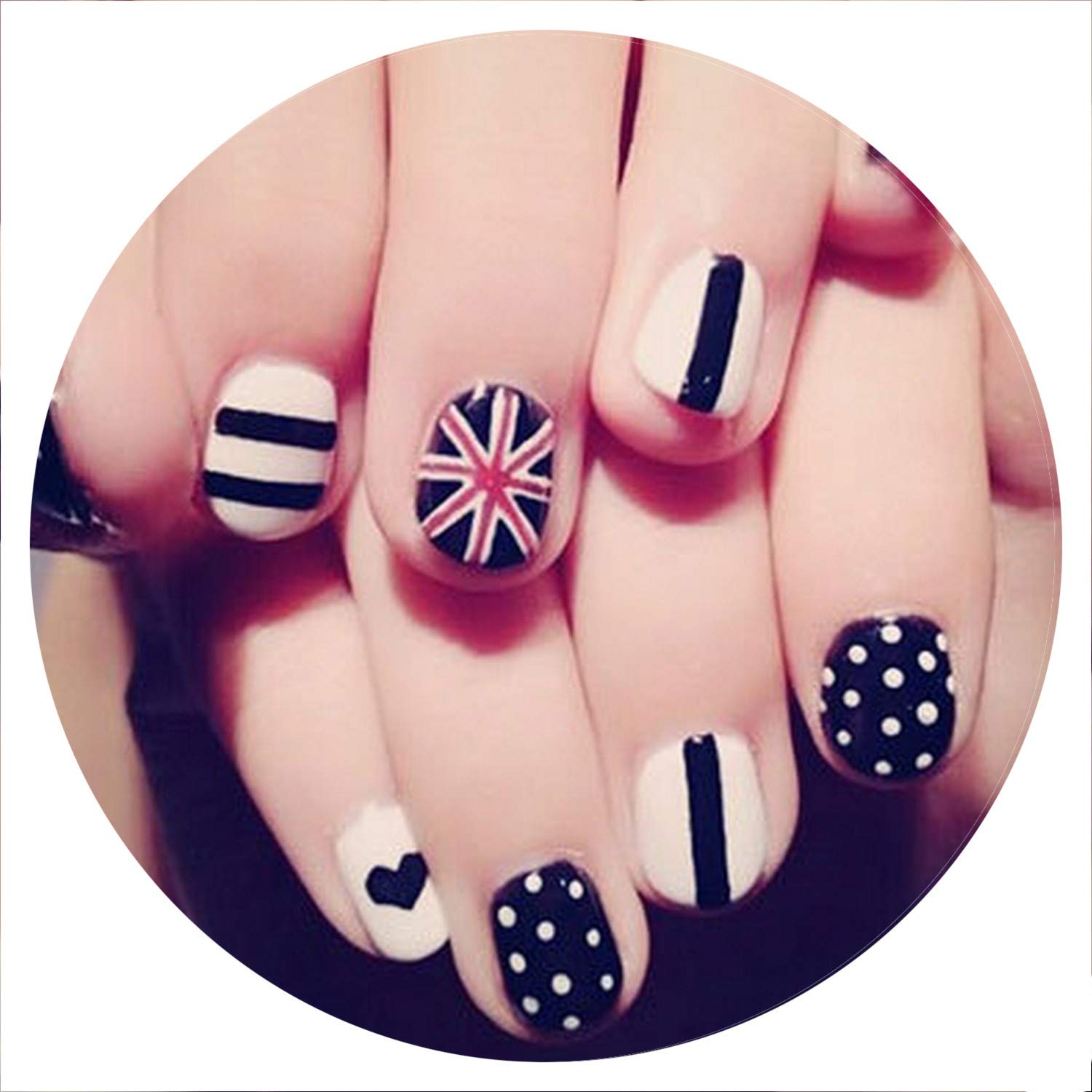 Amazon Com 24pcs Clear Pre Design Nail Tips Short Kids Pink (24Pcs Clear Pre Design Nail Tips Short Kids Pink False Nails Heat Black White Stripe Kiss Fake Nails Glue Sticker,F037-1)