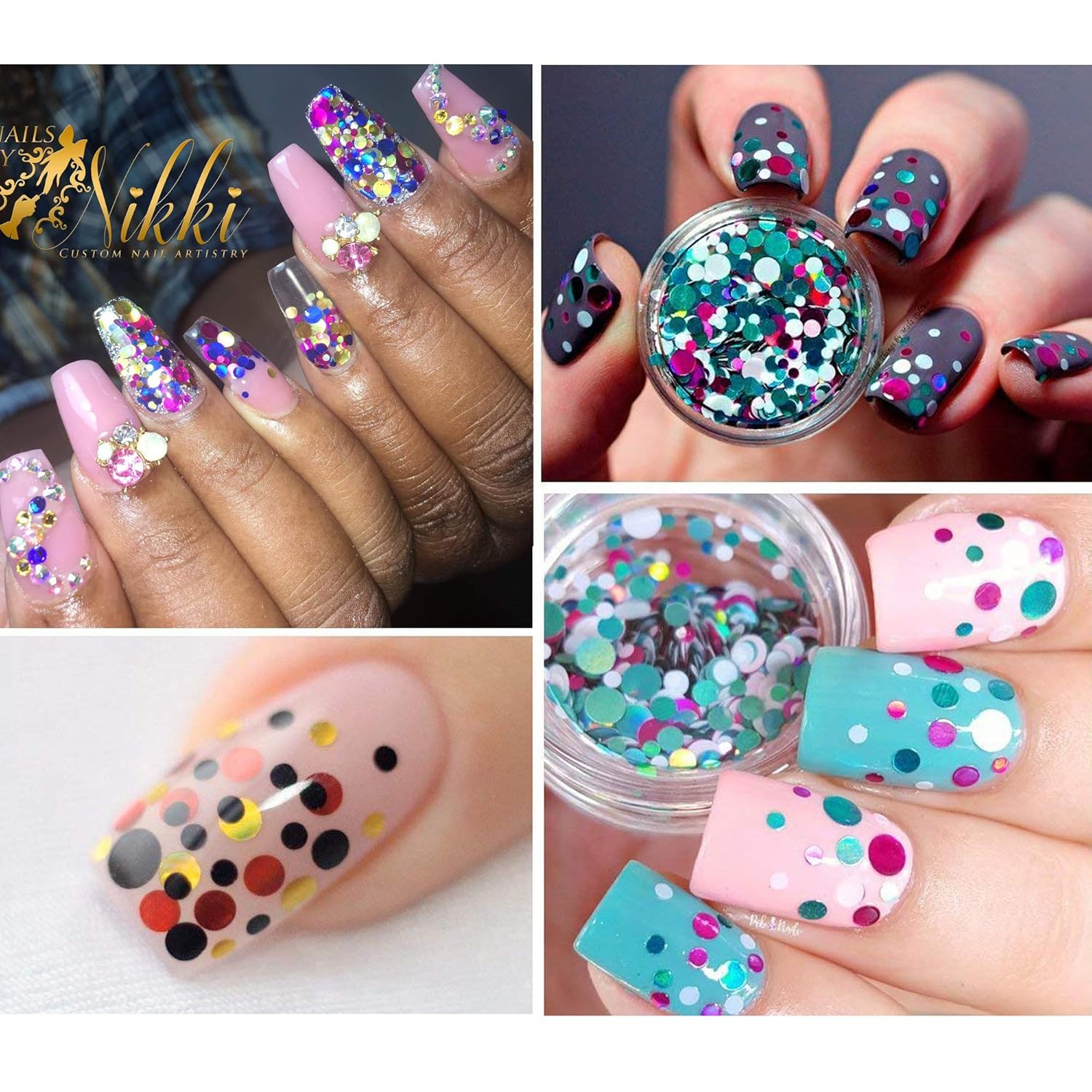 Amazon Com Nail Art Flake 12 Boxes Nail Glitters Circle Confetti (❤️ Novelty Bank's Nail Art Flake is made of non toxic foil with great pigments. There is also no odor to make you feel uncomfortable. Every color is ...)
