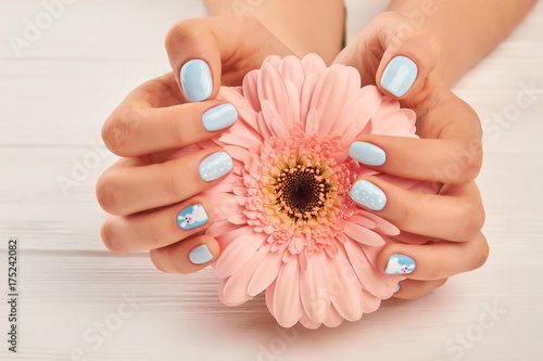 Gentle Gerbera In Female Manicured Hands Beautiful Female Hands (Gentle gerbera in female manicured ...)