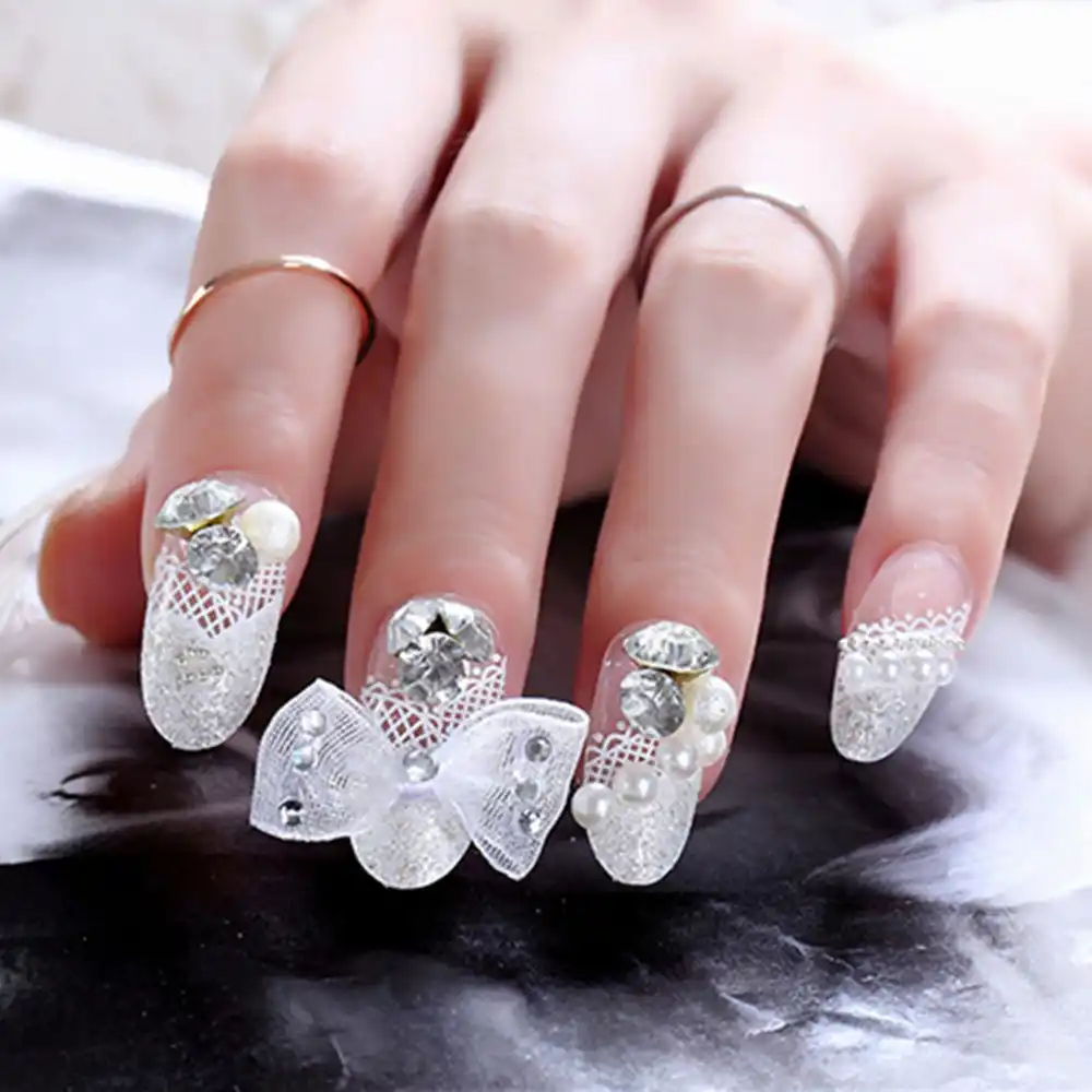 24 Sht Strazy Nakladnye Nogti Nevesty Svadebnaya Vecherinka Nakladnye (24 шт Стразы накладные ногти невесты Свадебная вечеринка накладные ногти роскошный дизайн ногтей искусственная кожа леди на весь ноготь наконечник ...)