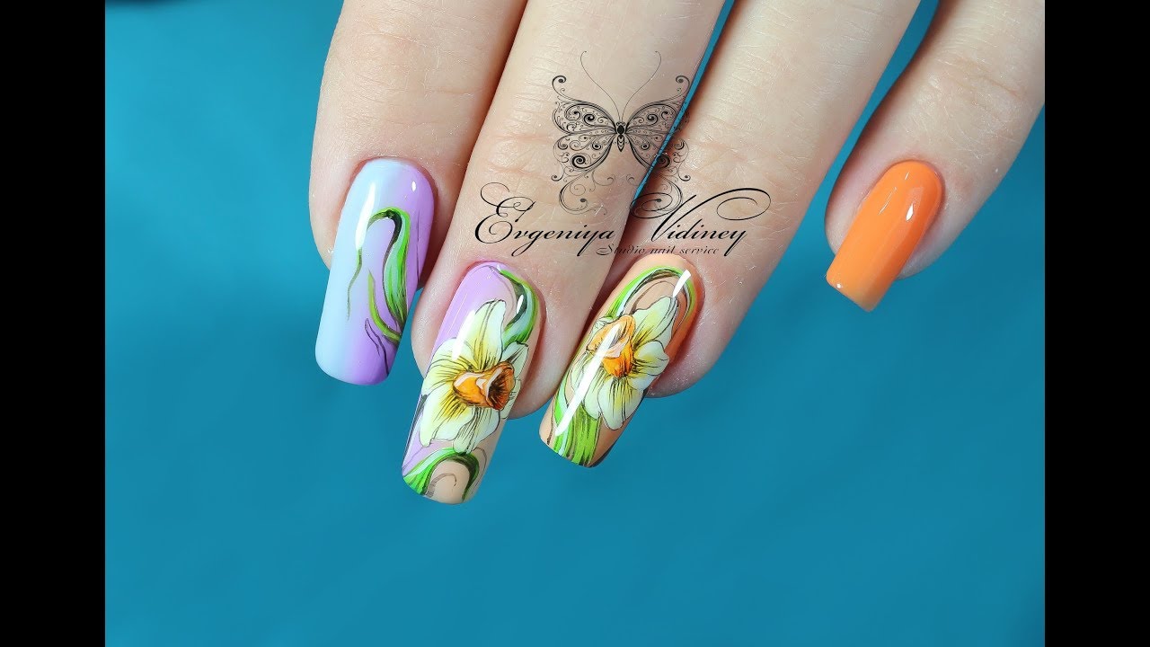 Narcissy Na Nogtyah Vesennij Dizajn Nogtej Rospis Nogtej (... Коротенькое видео по дизайну ногтей. Снято на телефон. ссылка на акриловые ...)