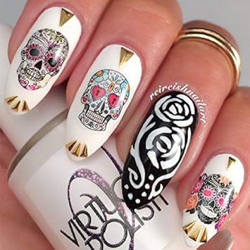 Amazon Com Sugar Skull Nail Art Day Of The Dead Decals Assortment (Sugar skull waterslide nail decals assortment. Sugar skulls aren't just for Day of the Dead Celebrations any more. They look so cool, you can wear ...)