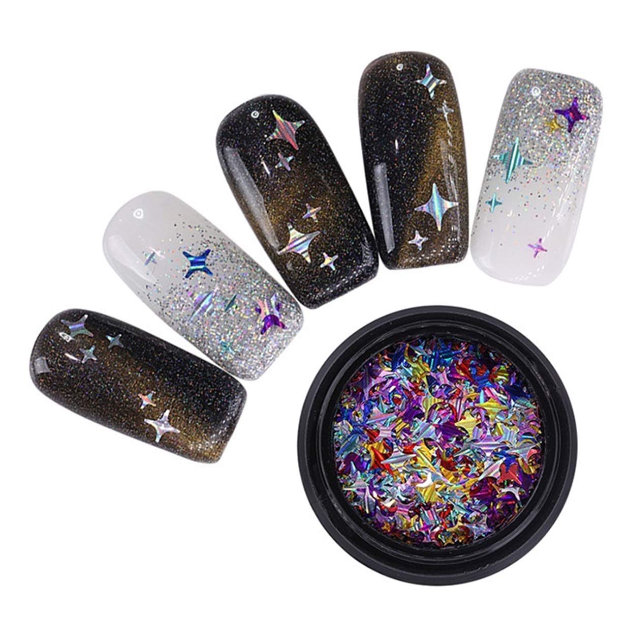 Amazon Com 4 Pcs Gold Silver Nails Art Rhinestones Angle Stars (Perfect holographic four angle stars nail sequins set gold silver laser multi-size manicure 3d art decorations Feature 1. Easy to apply on natural or ...)