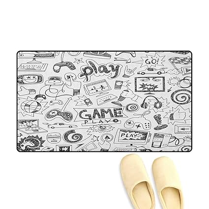 Amazon Com Zojihouse Video Games Bath Mat With Non Slip (zojihouse Video Games Bath Mat with Non Slip Monochrome Sketch Style Gaming Design Racing Monitor Device Gadget Teen 90s Size:16"x24" Black White)