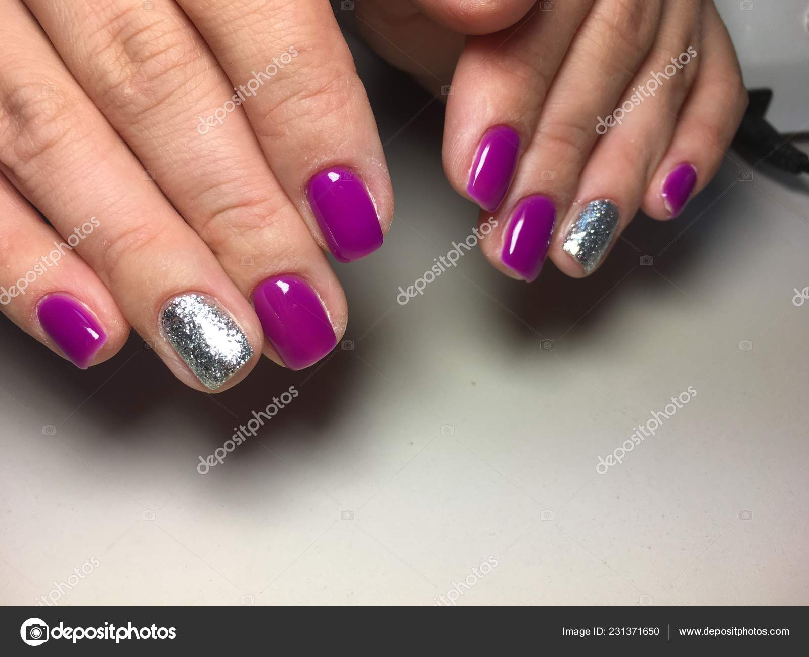 Fashionable Manicure Fuchsia Silver Design Short Nails Stock (depositphotos.com)