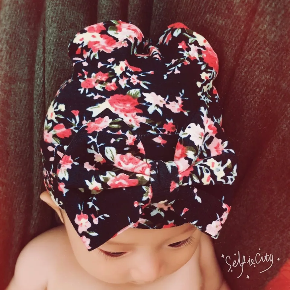 Newborn Baby Hat For A Girls Pink Flower Bowknot Beanies Newborn (Carol Monkey Baby)