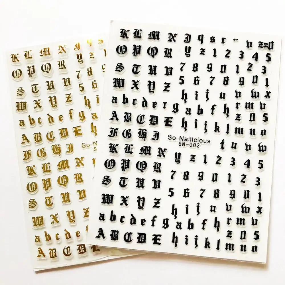 Sn 02 English Black Letter 8 10 3cm Series Designs Cool 3d Nail (US $1.79 |SN 02 english BLACK letter 8*10.3cm series DESIGNS COOL 3d nail art stickers decal template diy nail tool decorations-in Stickers & Decals ...)