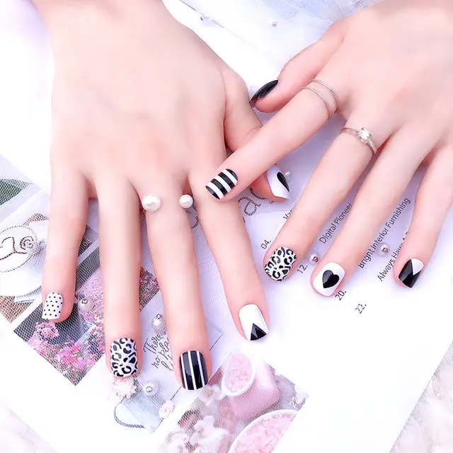 простой дизайн ногтей черный -