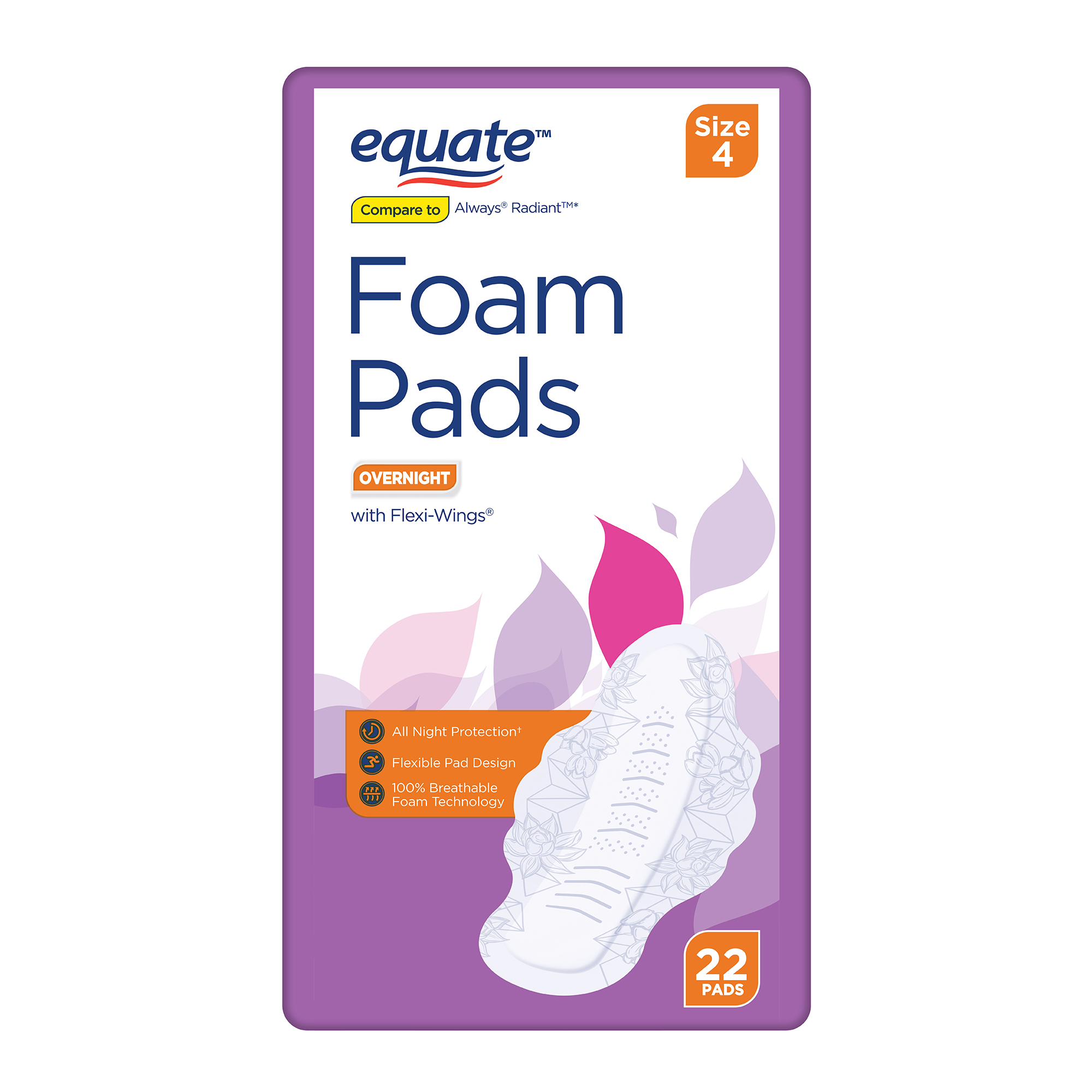 Equate Foam Pads With Flexi Wings Overnight Size 4 22 Count (walmart.com)