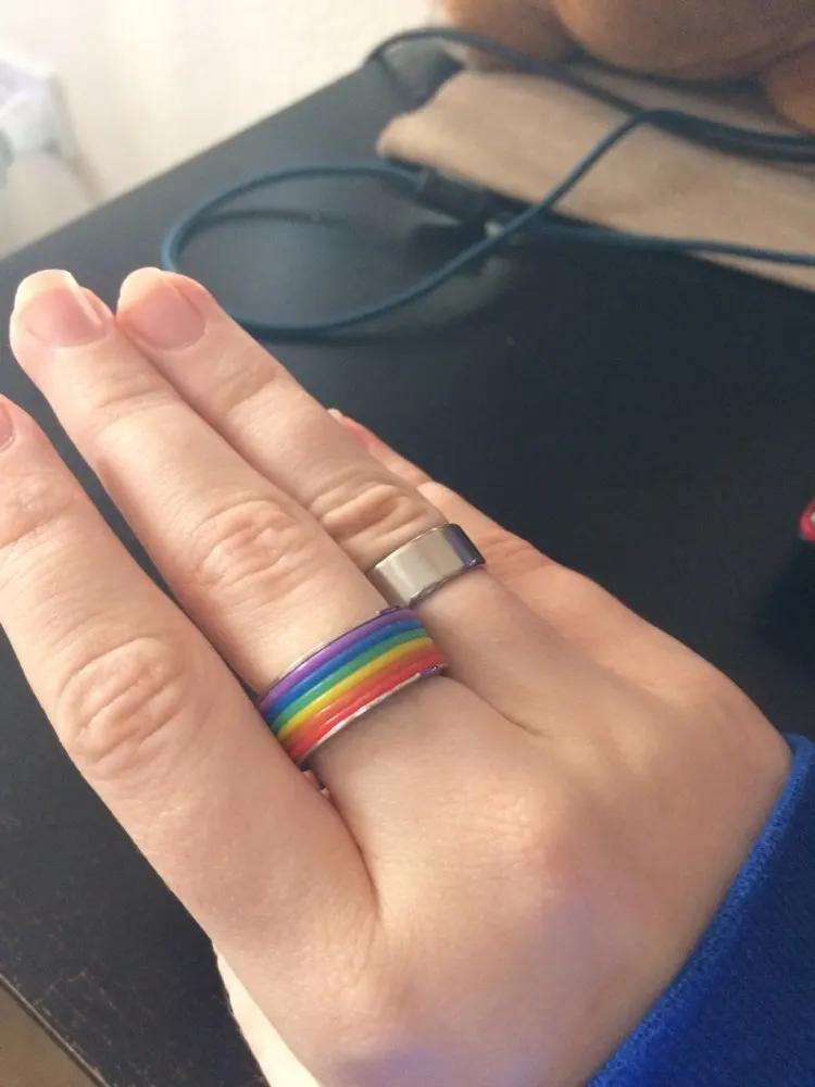 Lgbt Pride Stainless Steel Ring With Rainbow Design Queerks (Queerks™)