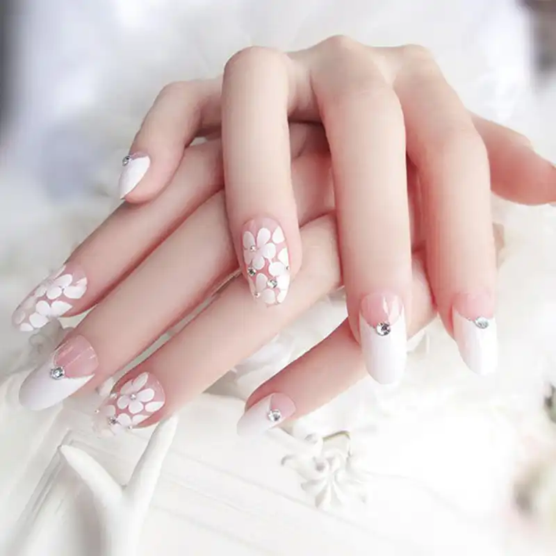 24 Sht Kompl Belyj Cvetochnyj Dizajn Nogtej Predvaritelnyj Dizajn (aliexpress.ru)