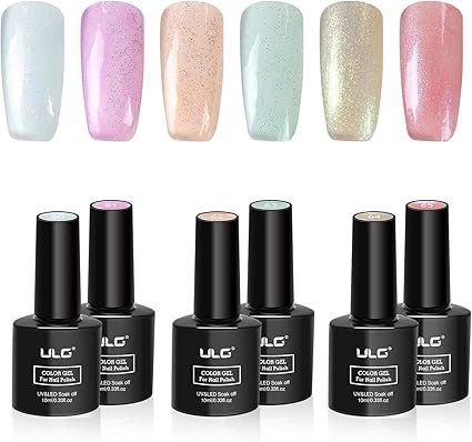 Amazon Com Shimmer Gel Nail Polish Kit Ulg Uv Led Soak Off Gel (❤ COLOR LABEL DESIGN ❤ This ULG gel nail polish set contains 6 dreamy color with slight paillette, which will show beautiful shine in sunlight. ...)