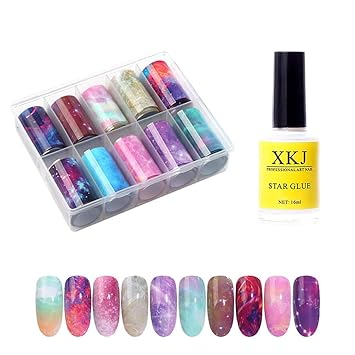 Amazon Com 3d Design Nail Art Sticker Tip Colorful Star Glue Set (Nail Transfer Foil 10 Colors Sticker For Nail Tip Decoration And Star Glue Set)