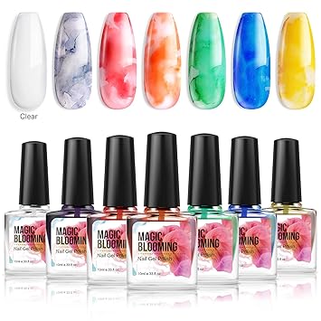 Amazon Com Modelones Nail Ink Magic Blooming Nail Polish (❤MARBLE BLOOMING EFFECT: Magic blossom easy to create the marble blooming effect, such as naturally realistic flower effect, different watercolor ink ...)