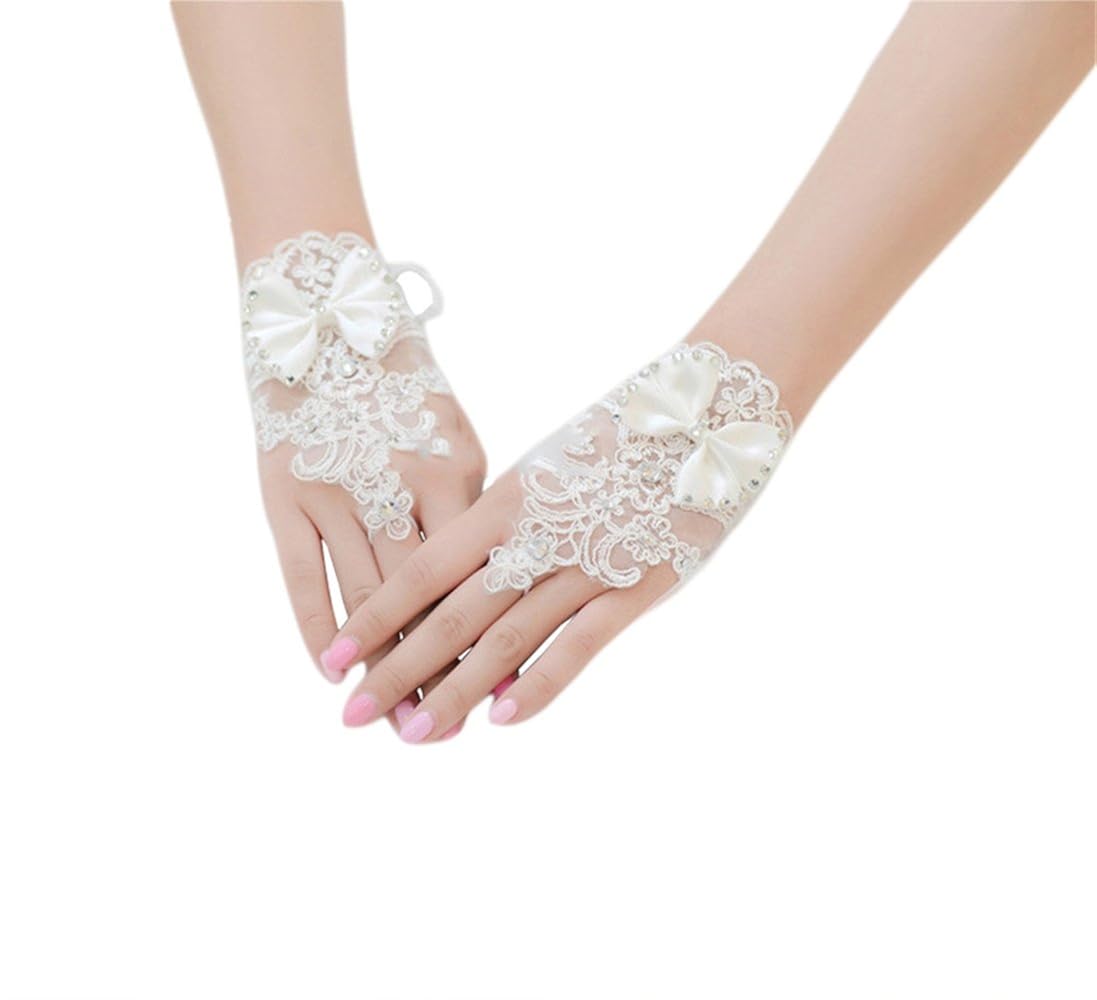 New Lace Floral Brides Wedding Floral Bowknot Fingerless Short (NEW LACE FLORAL BRIDES WEDDING FLORAL BOWKNOT FINGERLESS SHORT GLOVES)