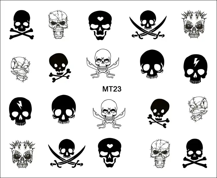 1 List Nogtej Mt23 Chernyj Belyj Mech Cherep Modnyj Dizajn Nogtej (1 лист ногтей MT23 черный белый Меч череп Модный дизайн ногтей переводная наклейка для ногтей татуировки Советы Инструмент для ногтей)