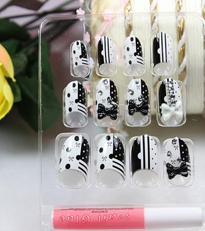 Amazon Com Ggsell Ggsell Ds High Quality New Design Nail Art (GGSELL GGSELL DS High quality New design Nail Art 12pcs black and white false nail with butterfly bow...)