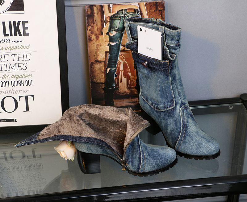 Stylish Blue Denim Boots Women Shoes Cowboy Pocket Design Knee (Fashionable waterproof boots of the new season, slimwindy provides the best stylish blue denim boots women shoes cowboy pocket design knee high boots ...)