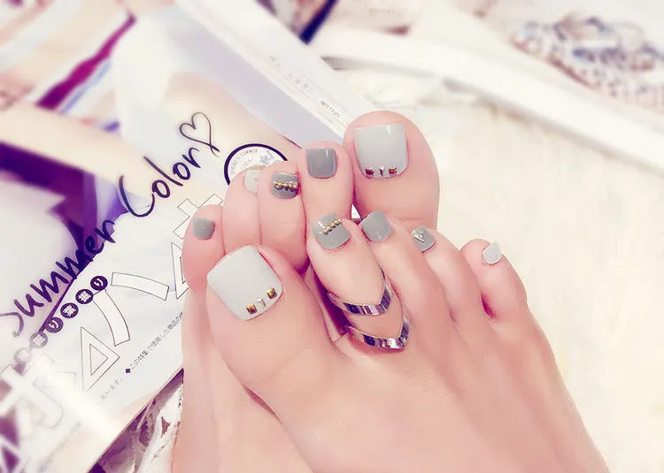 24 X Summer Must Have Gel Color Gray High Quality Pre Design Full (US $2.15 28% OFF|24 x Summer Must Have Gel Color Gray High Quality Pre design Full Cover French 3D Short Fake False nail For Foot Toenails [T122]-in ...)