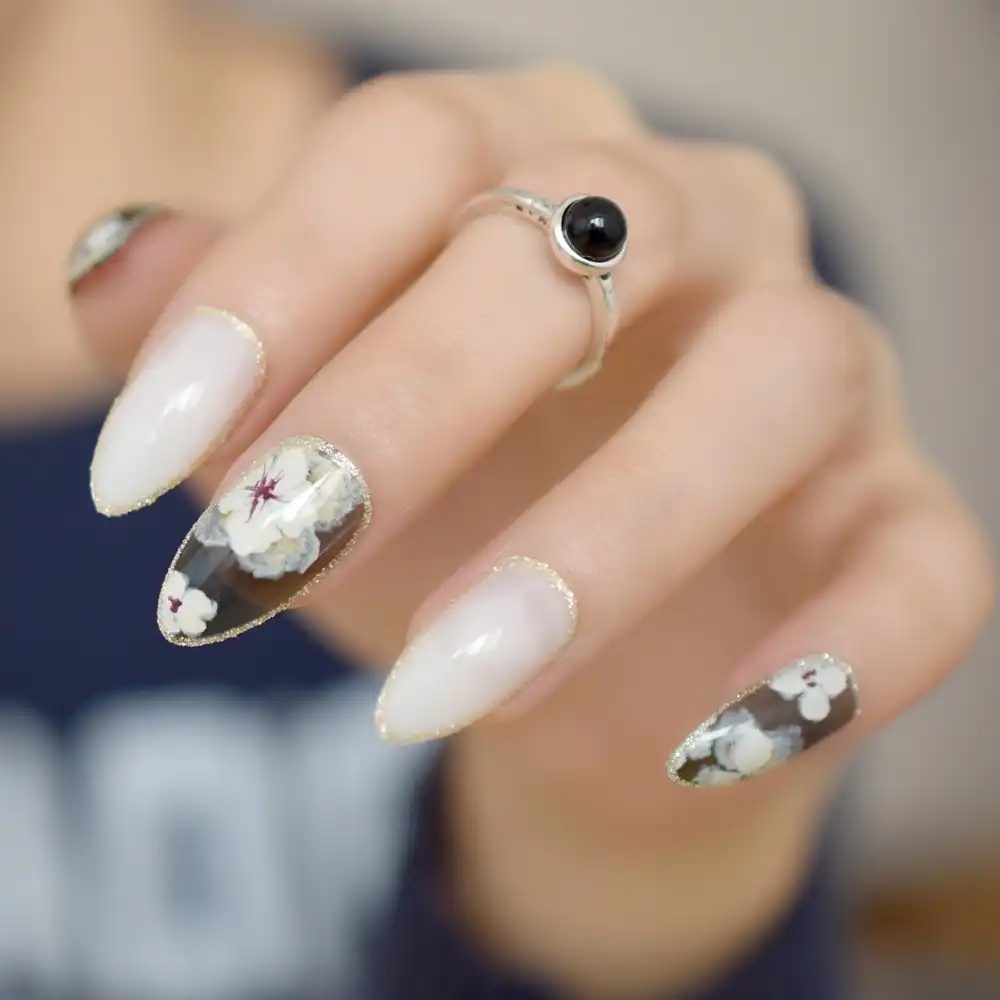 24 Sht Upak Shpilkah Belo Nakladnye Nogti Dlya Nog S Cvetochnym (EchiQ)
