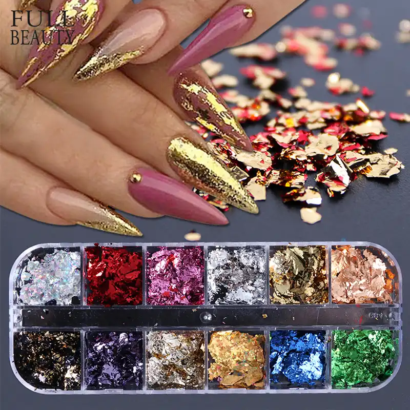12 Setki Dlya Nogtej Blestki Blestka Alyuminij Neregulyarnye Hlopya (Full Beauty)
