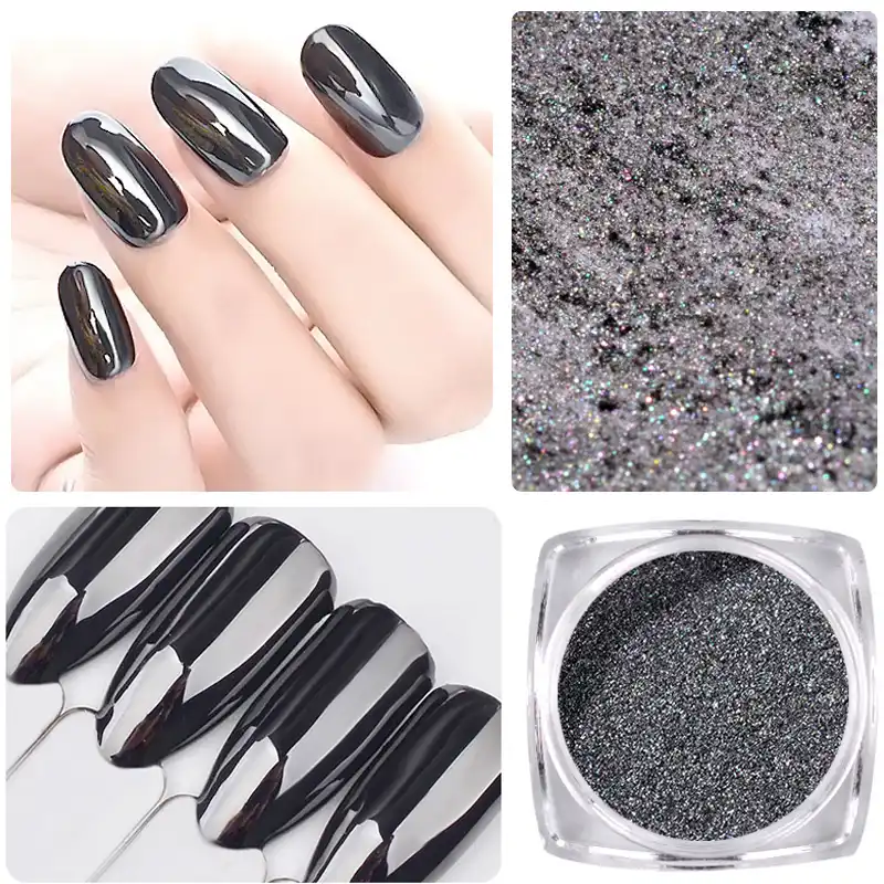 Super Blestyashie Chernye Yarkie Blestki Dlya Nogtej Poroshok 1 G (Супер блестящие черные яркие блестки для ногтей порошок 1 г ослепительный хром пигмент пыль маникюр Дизайн ногтей украшения)