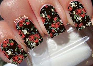 Amazon Com Flowers Red Roses Water Nail Art Transfers Stickers (AM Nails nail decals are manufactured in the USA! Our decal sets are printed on a single sheet of high quality material using modern equipment for a ...)
