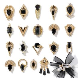 Dizajn Nogtej Chernogo Gornogo Hrustalya Onlajn Dizajn Nogtej (MD DOLL 2 шт / пакет 3D Nail Art Decoration Золото металла украшения ногтей Черный луки Rhinestone Смешанный Размер Art Design)
